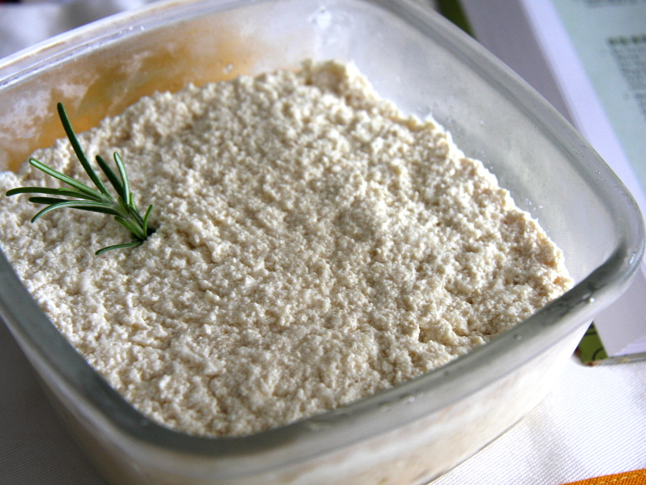pasta de tofu com um ramo de alecrim em um pote de vidro