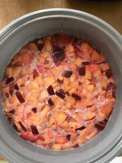 ⠂1 kg de frutas picadas que tiverem quase passando (usei ameixas pra essa versão da foto)